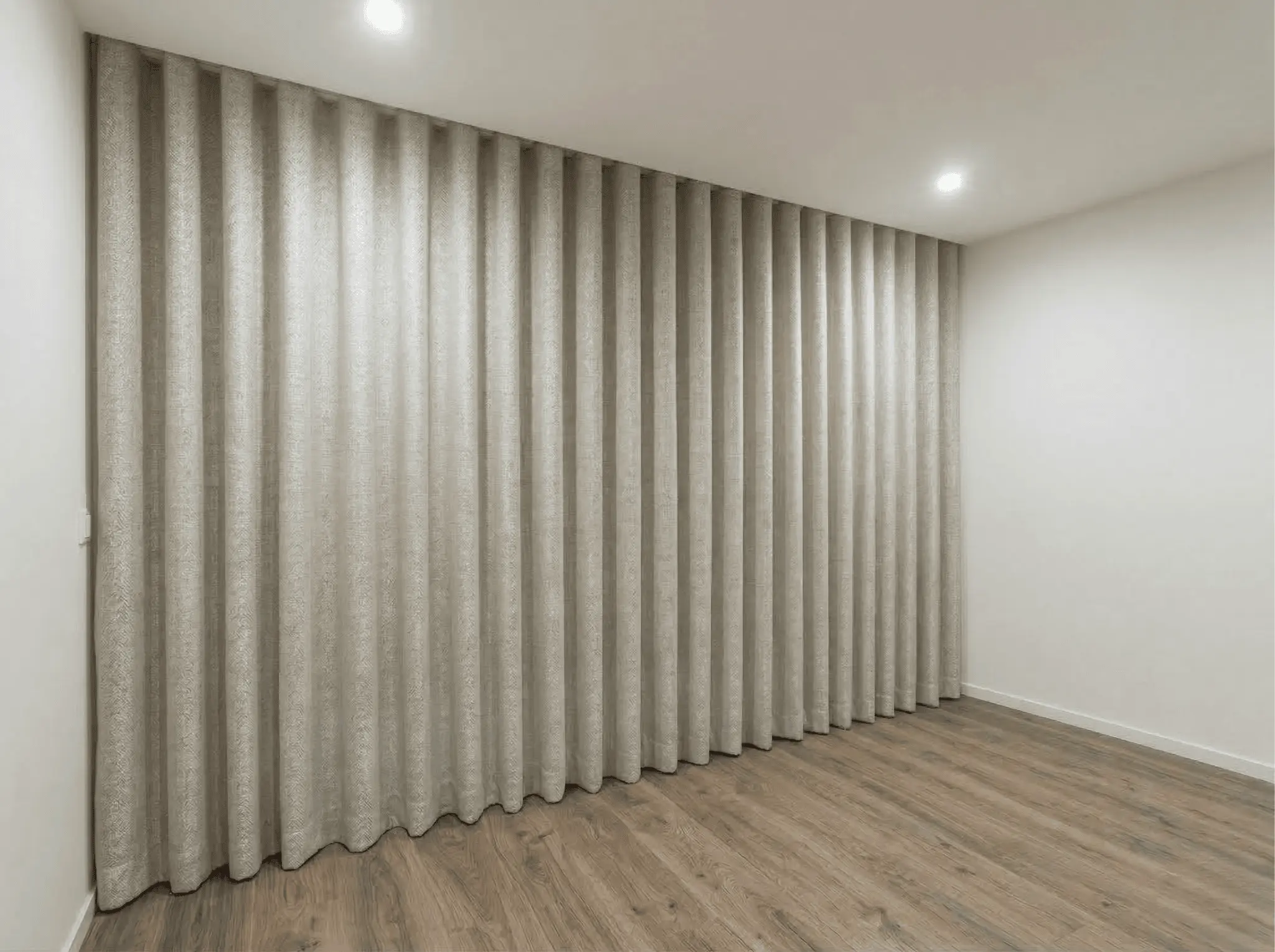 Nota técnica: Em vãos superiores a 3 metros, aplicamos junção central discreta que preserva a continuidade visual e o caimento impecável.